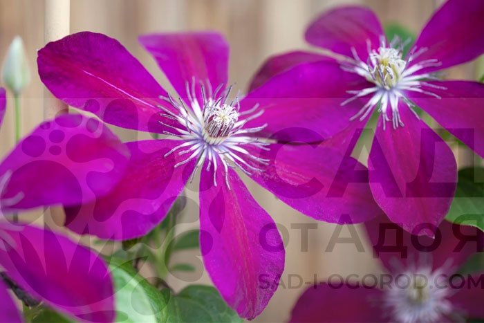 Эффектный польский сорт с искристыми, красными, шелковистыми цветками с тёмно-красными тычинками. Цветёт с июня по август. Особенно хорош для выращивания у ограждений, стен, беседок, решёток. Может карабкаться по натуральным опорам, напр. небольшим деревьям и кустарникам.