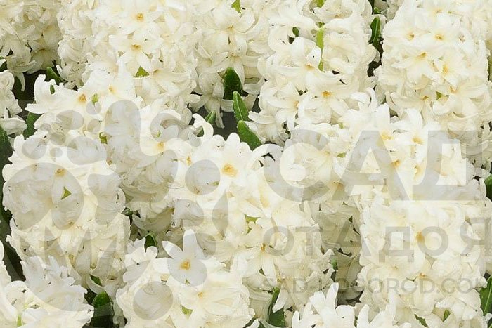 Гиацинт Карнеги - многолетнее луковичное растение высотой 25–30 см с плотными соцветиями, состоящими из звездчатых белоснежных цветков диаметром 4 см. Цветки долго не увядают и имеют сильный приятный аромат. Соцветие высотою 15-20 см. Листья насыщенно-зеленые, имеют длину до 30 см.