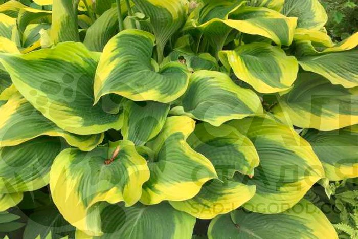 Хоста Атлантис. Ярко-зеленая, с очень широкой каймой от желтого до кремового цвета, с небольшими полосами, заходящими ближе к основанию листа; матовая сверху и с сизым налетом снизу, жилки глубокие бороздчатые, край широко-волнистый. Лист неровный, в виде вытянутого овала, с отогнутым вниз кончиком. Цветы лавандовые. Куст плотный, пышный, изящный, ниспадающий куст разрастается до 175 см в ширину и до 75 см в высоту. Листовая пластинка размером 33 х 20 см. Период цветения июль-август. Зона зимостойкости: 3 (-40 ° С).