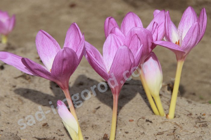 Одна луковица даст до 10 штук очень крупных лавандово-розовых цветов с тонким белым горлом. Цветки, появляются в сентябре-октябре, цветоносы достигают высоты 30 см.