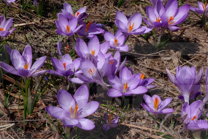 Цветок небольшой, но очень пропорциональный и изящный, около 2-3 см в длину. Форма классическая, бокаловидная, но с очень аккуратными, заостренными лепестками. Снаружи лепестки имеют нежный сиренево-фиолетовый оттенок с тонкими, более темными фиолетовыми прожилками, которые создают эффект полосатого или пернатого рисунка. Внутренняя сторона лепестков обычно светлее — бледно-сиреневая или почти белая. Это придает цветку особую объемность и глубину. Горлышко цветка белое, из него выходят яркие оранжево-красные рыльца (часть пестика), которые создают потрясающий контраст с холодными лепестками. На одном растении может быть несколько цветков. Период цветения ранняя весна (март - начало апреля). Часто зацветает одним из первых, даже из-под снега.