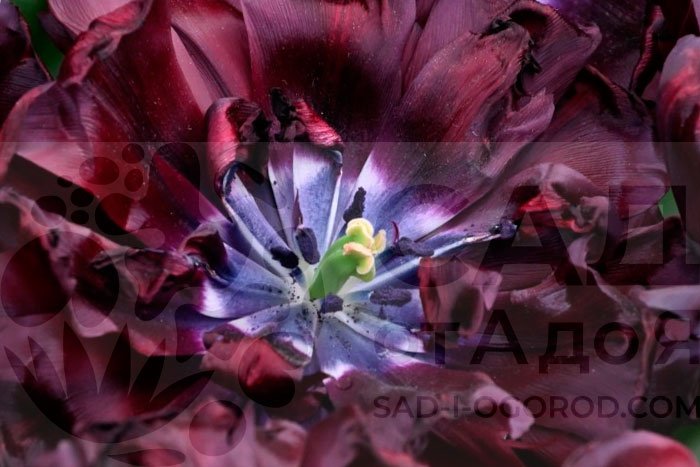 Тюльпан махровый Палмира. Один из лучших пионовидных почти черных тюльпанов. Относится к пионовидным, ранним сортам.