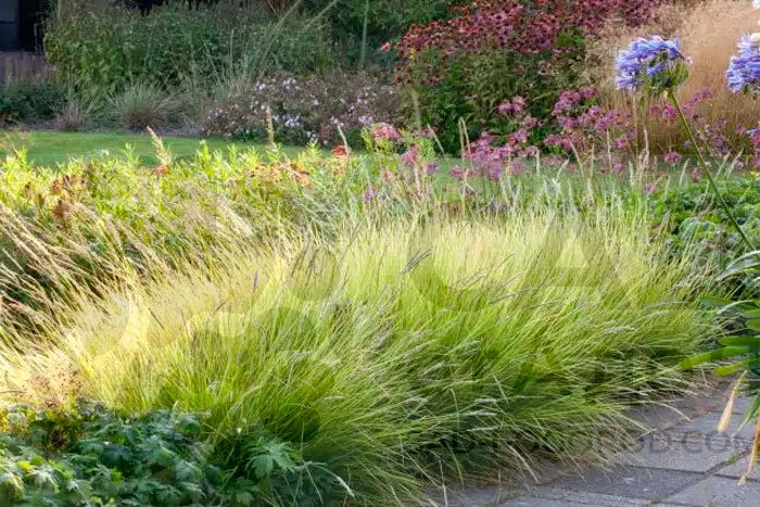 Сеслерия осеняя Sesleria autumnalis: вечнозеленый холоднорастущий злак. Листья достаточно широкие, до 9 мм, ярко-зеленые. В период цветения куст обильно покрывается узкими бело-бежевыми колосьями. Соцветия колосовидные, серебристо-белые при роспуске, коричневатые в конце цветения. Высота во время цветения до 50 см. Цветет в июне-июле.