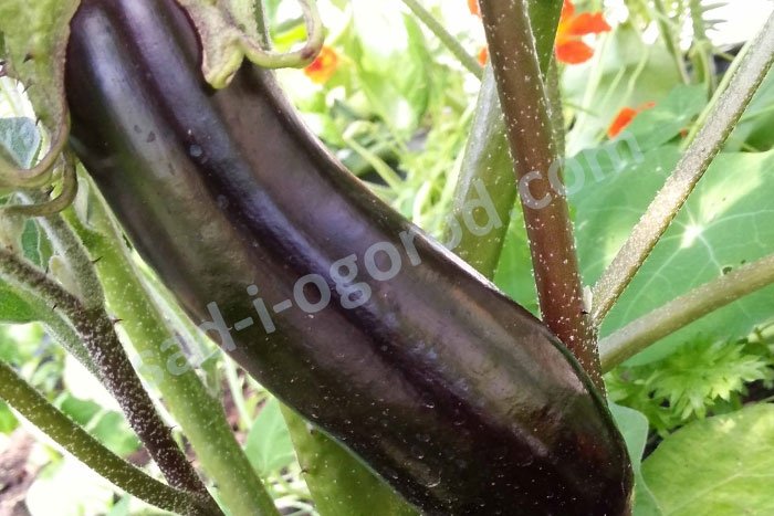 Рассада баклажанов Меч Самурая. Этот сорт выращивают на открытых грядках или под временным пленочным укрытием. Убирать урожай можно через 120 дней после появления ростков. Кусты вырастают до 60 сантиметров в высоту, компактный, полураскидистый. Стебель без антоциановой окраски, слабоопушенный. Листья среднего размера, зеленые, гладкие, край слабоволнистый. Шипов на чашечке нет. Форма плода удлиненно-булавовидная. Поверхность плода глянцевая. Длина плода 20-22 см, диаметр плода 6-7 см. Масса плода 180-200 г. Окраска в стадии технической спелости: темно-фиолетовая, мякоть беловатая. Вкусовые качества хорошие и отличные, без горечи.
