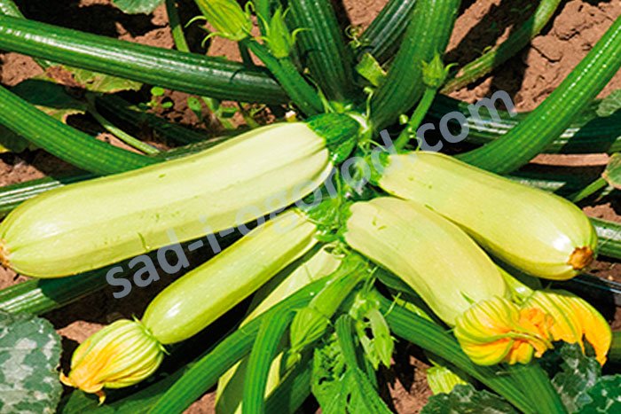 Кабачок Галакси. Высота растения 40-60 см. Растение кустовое, мощное. От всходов до начала плодоношения проходит всего 35–40 дней. Плоды цилиндрические, длиной 16–22 см, диаметром 4–7 см, массой 0,5–0,6 кг. гладкие, бело-зеленые. Урожайность — до 10 кг/м2. Кожица блестящая, глянцевая. Мякоть белая, отличной консистенции. Транспортабельные и вкусовые качества высокие.