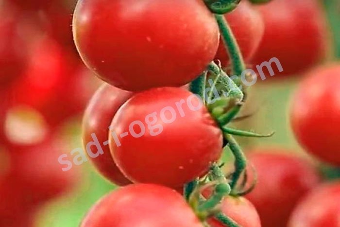 Салатный. Раннеcпелый. Растение детерминантное. Лист мелкий, зеленый. Соцветие простое. Плодоножка с сочленением. Период от всходов до начала плодоношения 95-100 дней. Плод округлый, очень мелкий, гладкий, средней плотности, собраны в длинные кисти. Окраска незрелого плода зеленая без пятна у основания, зрелого - розовая. Число гнезд - 2. Масса плода - 17 г. Количество плодов в кисти 13-15 шт. Вкус отличный. Лежкость хорошая.