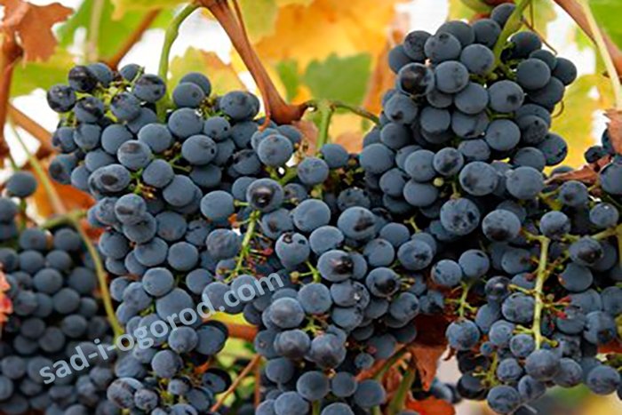 Гроздь средняя, ветвистая, рыхлая, напоминает большую кисть черной смородины. Средняя масса грозди 86,5 - 250 г. Ягода черная, средняя, округлая, мякоть мясисто-сочная, довольно терпкая, окрашенная.