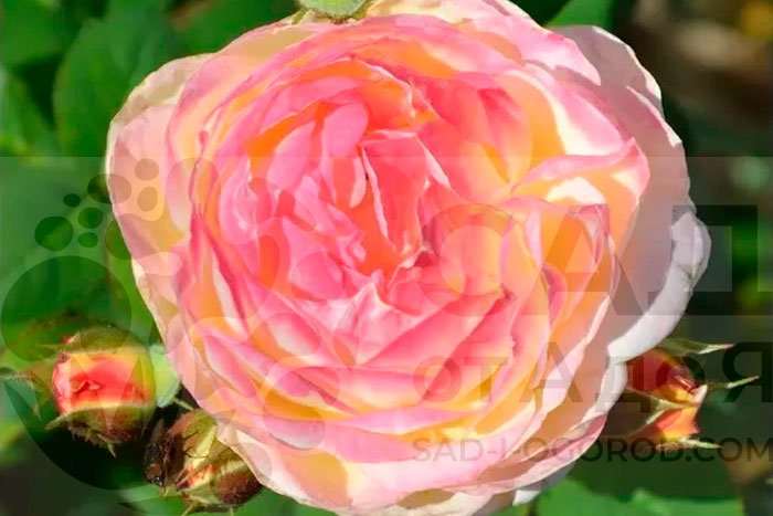 Цветки очень красивой формы, округлые, большие, диаметром 13-14 см, махровые (50-60 лепестков), в соцветиях. Цвет изменяется от жёлтого (в бутонах) до красного в роспуске, что постоянно оживляет этот сильный, хорошо разветвлённый куст. Высота 100-120 см, шириной 50 см. Аромат умеренный, фруктовый. Листва высокоустойчивая к заболеваниям. Цветение обильное, повторное, с мая до заморозков. Рекомендуется для одиночных и групповых посадок.