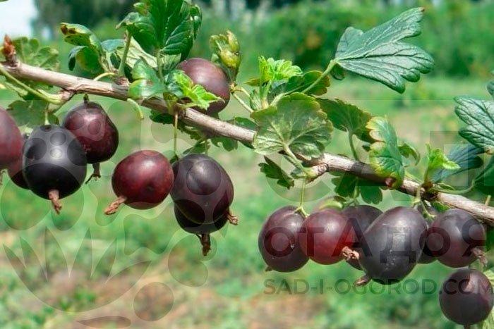 Куст сильнорослый, слабораскидистый. Побеги средних размеров, прямые, зеленые, неопушенные. Шипы короткие, тонкие, одиночные. Листья трехлопастные, с глубокими вырезами, средние, зеленые. Пластинка листа прямая, голая, гладкая, матовая. Зубчики тупые, неподогнутые; основание листа прямое. Соцветие двухцветковое, с крупными цветками. Ягоды средние, овальные, граненые, почти черные с восковым налетом, без опушения. Плодоножка короткая, тонкая, буро-зеленой окраски. Чашечка полуоткрытая.