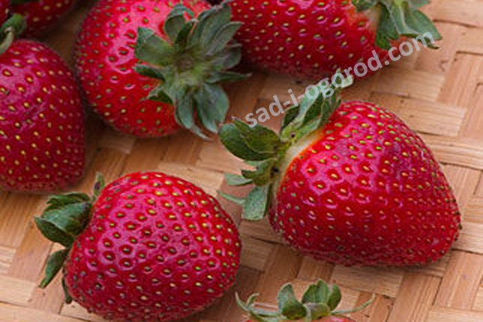 Сроки созревания ранние. Плоды крупные 15-25 г, округло-конические, ярко-красные, блестящие, приятного десертного вкуса. Мякоть бело-розовая, средней плотности, сочная, ароматная. Урожайность 5,5 кг с 1 кв.м.